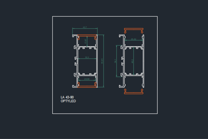 - - Rail en aluminium anodisé argent, noir ou blanc